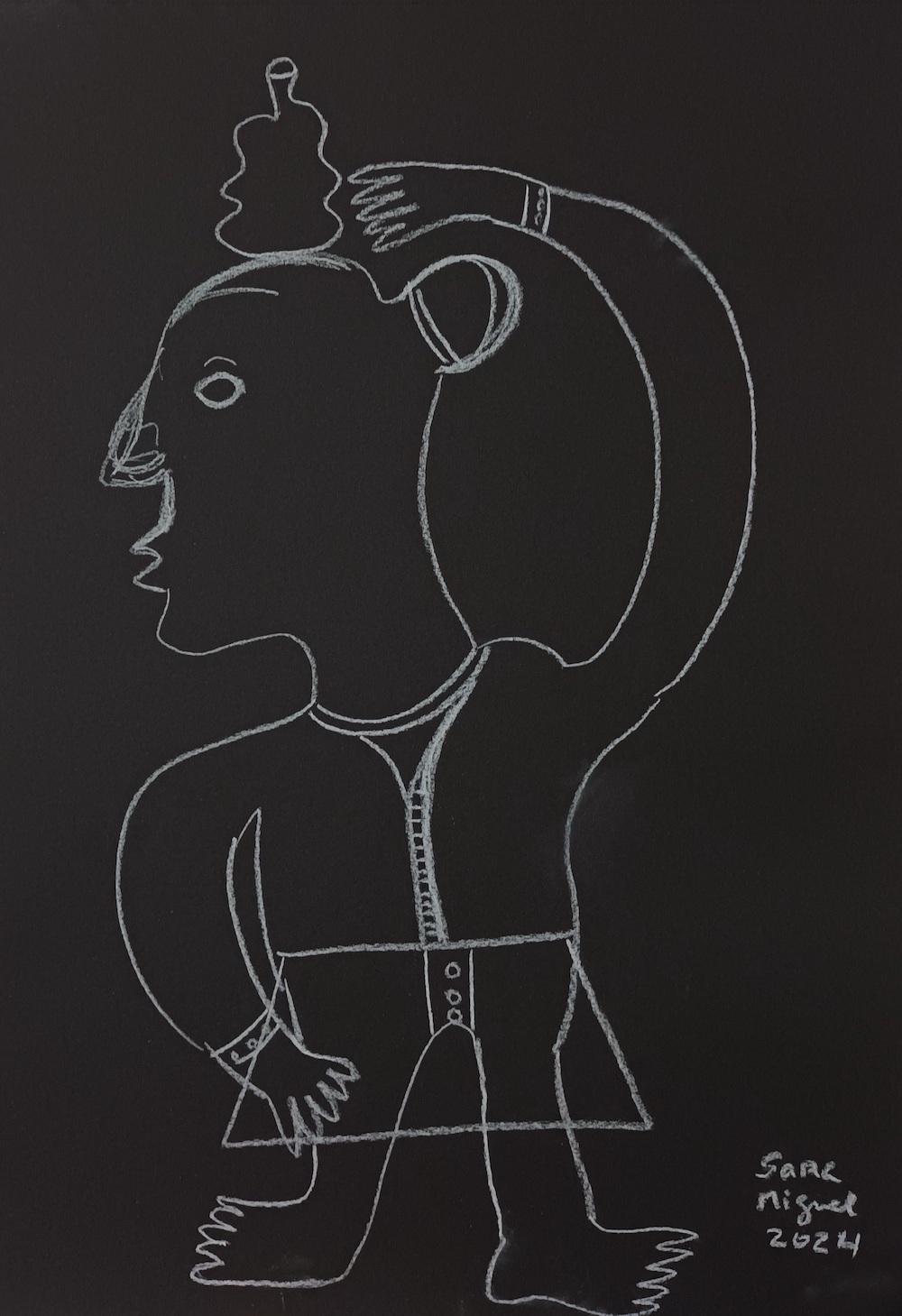 O suporte desta obra é papel preto aguarela Fabriano.